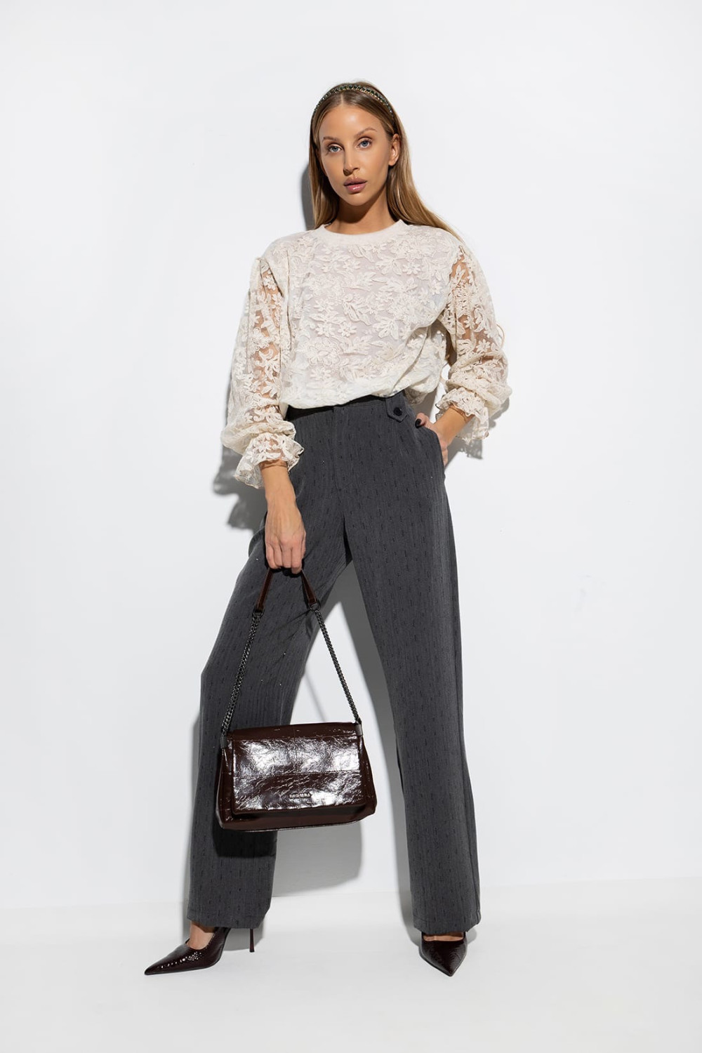 Sweterek śmietankowy z koronką LOUVE