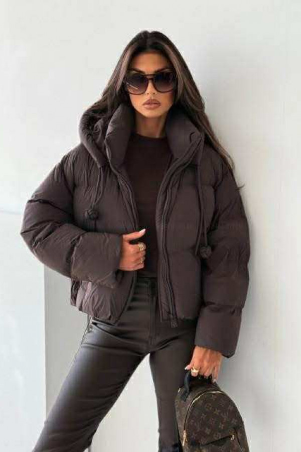 Kurtka puchowa czekoladowa z kapturem