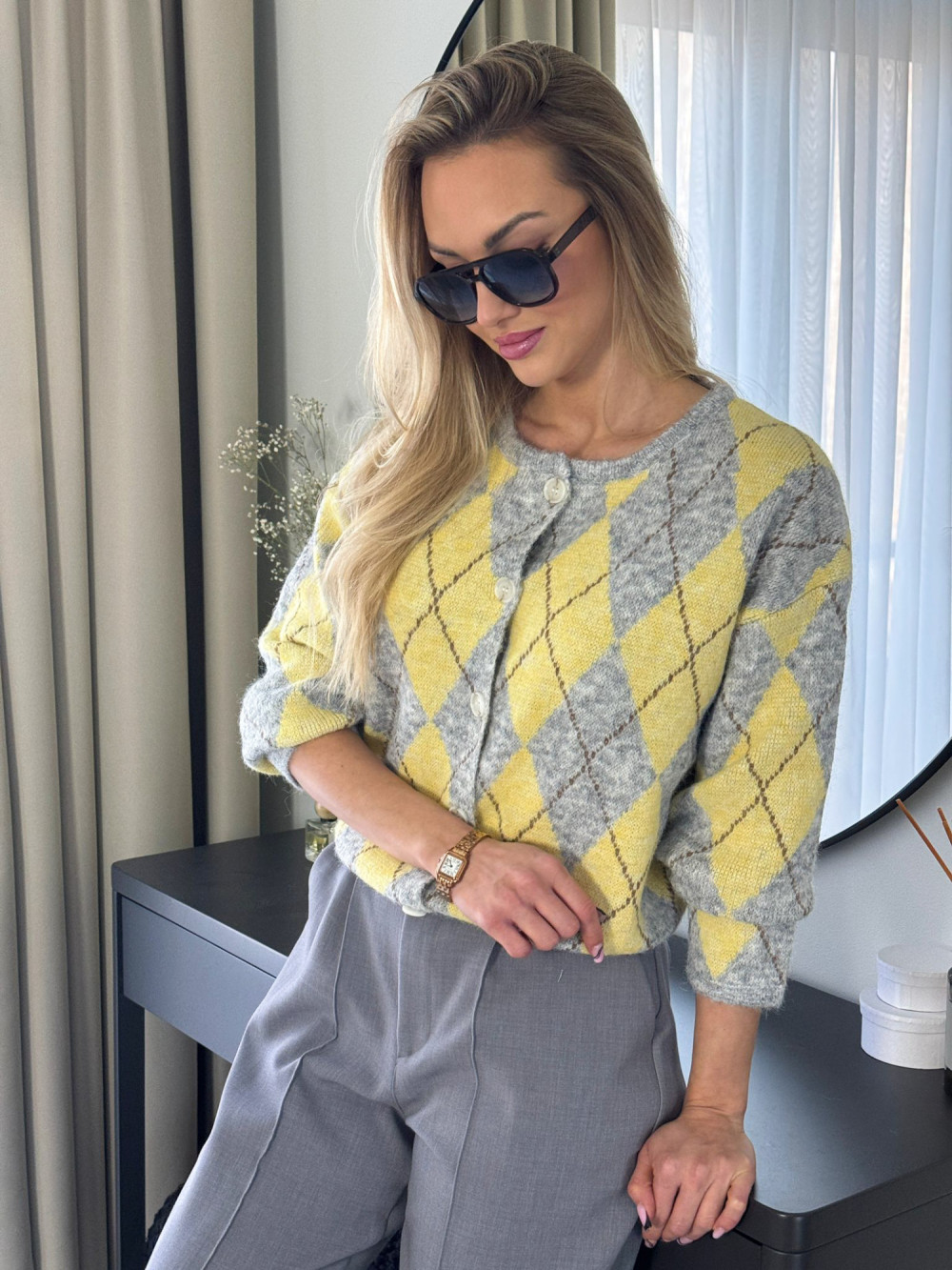 Kardigan STANLEY szary w romby