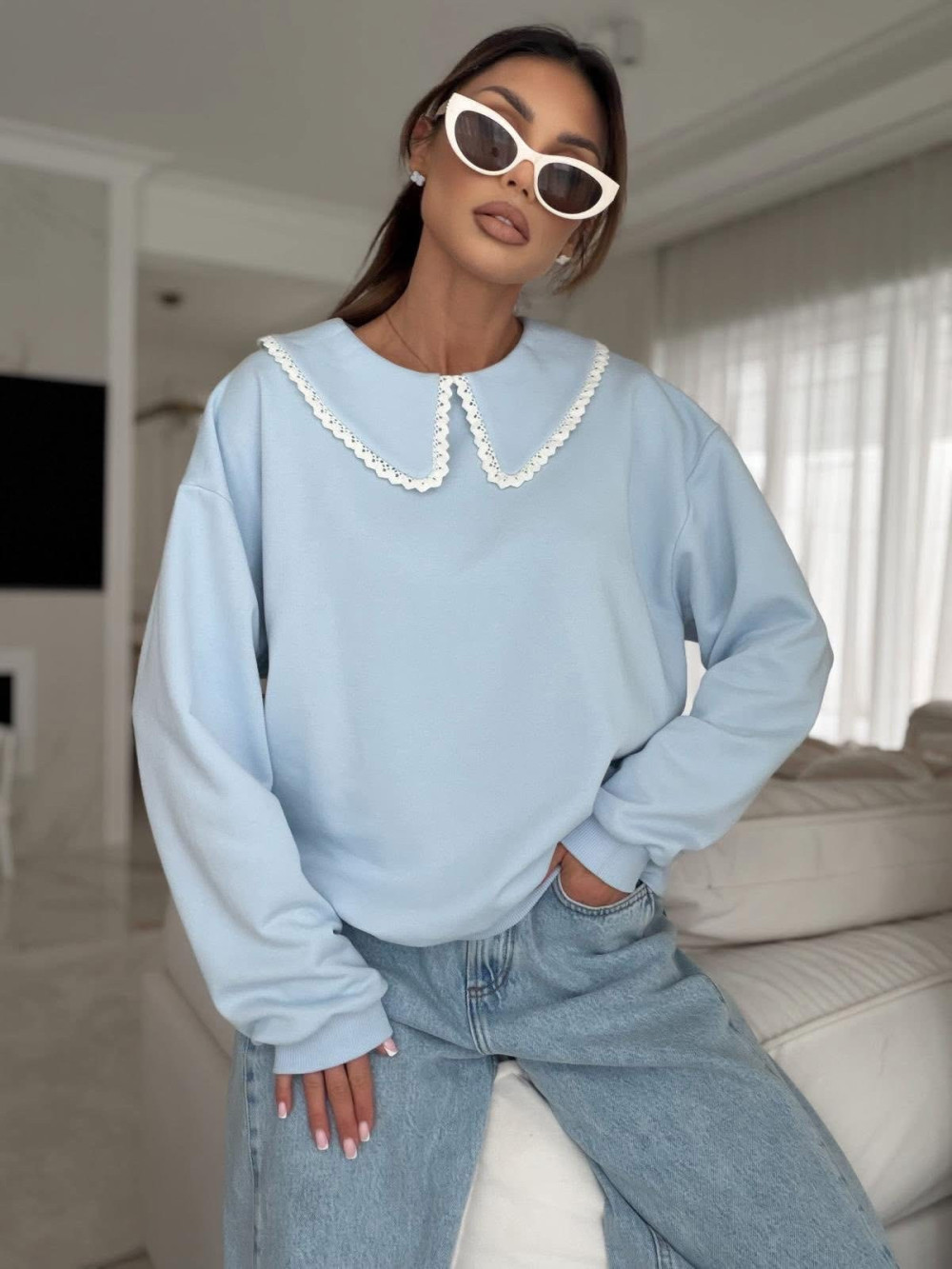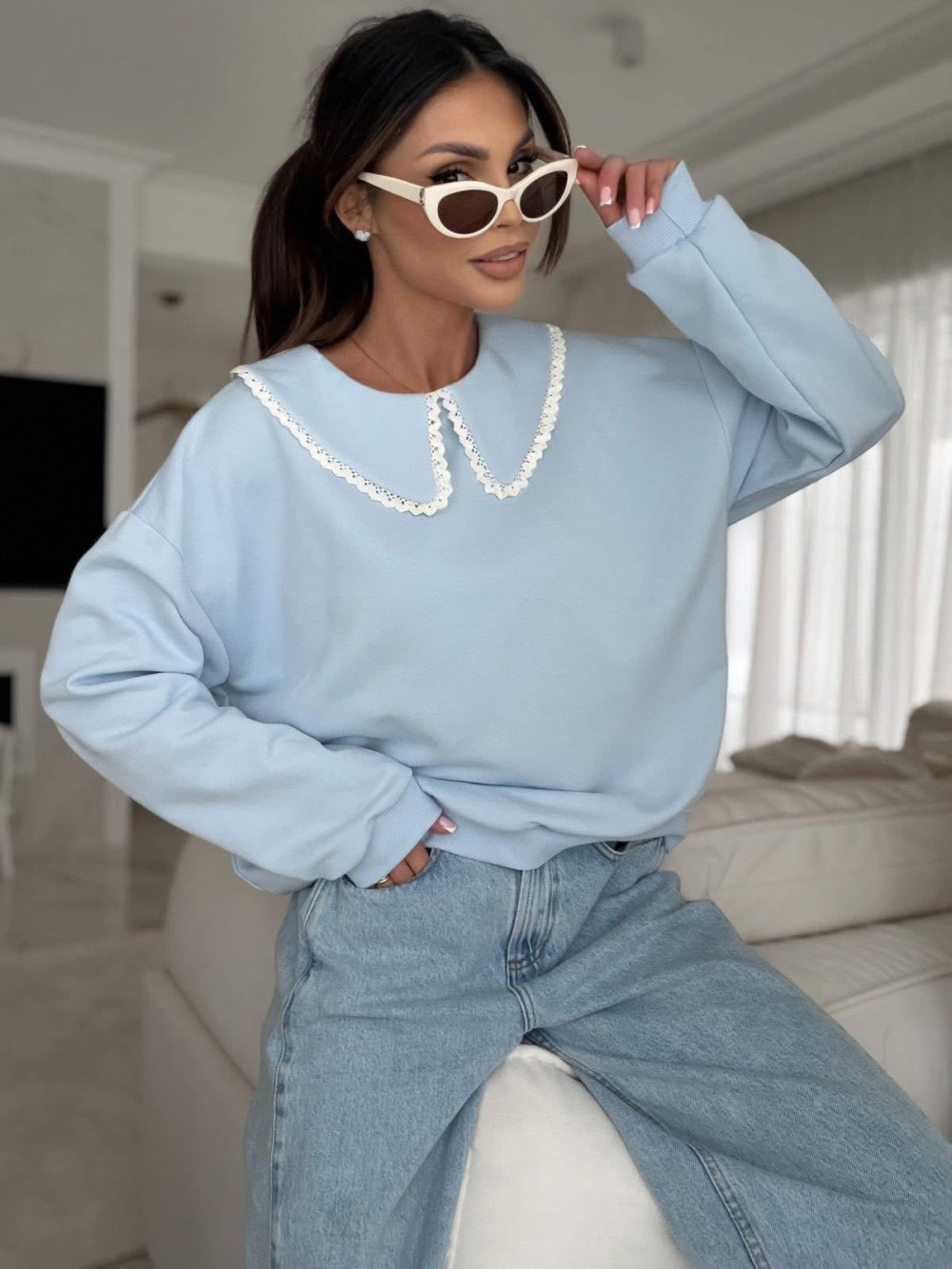 Bluza z ozdobnym kołnierzem AMBER błękitna