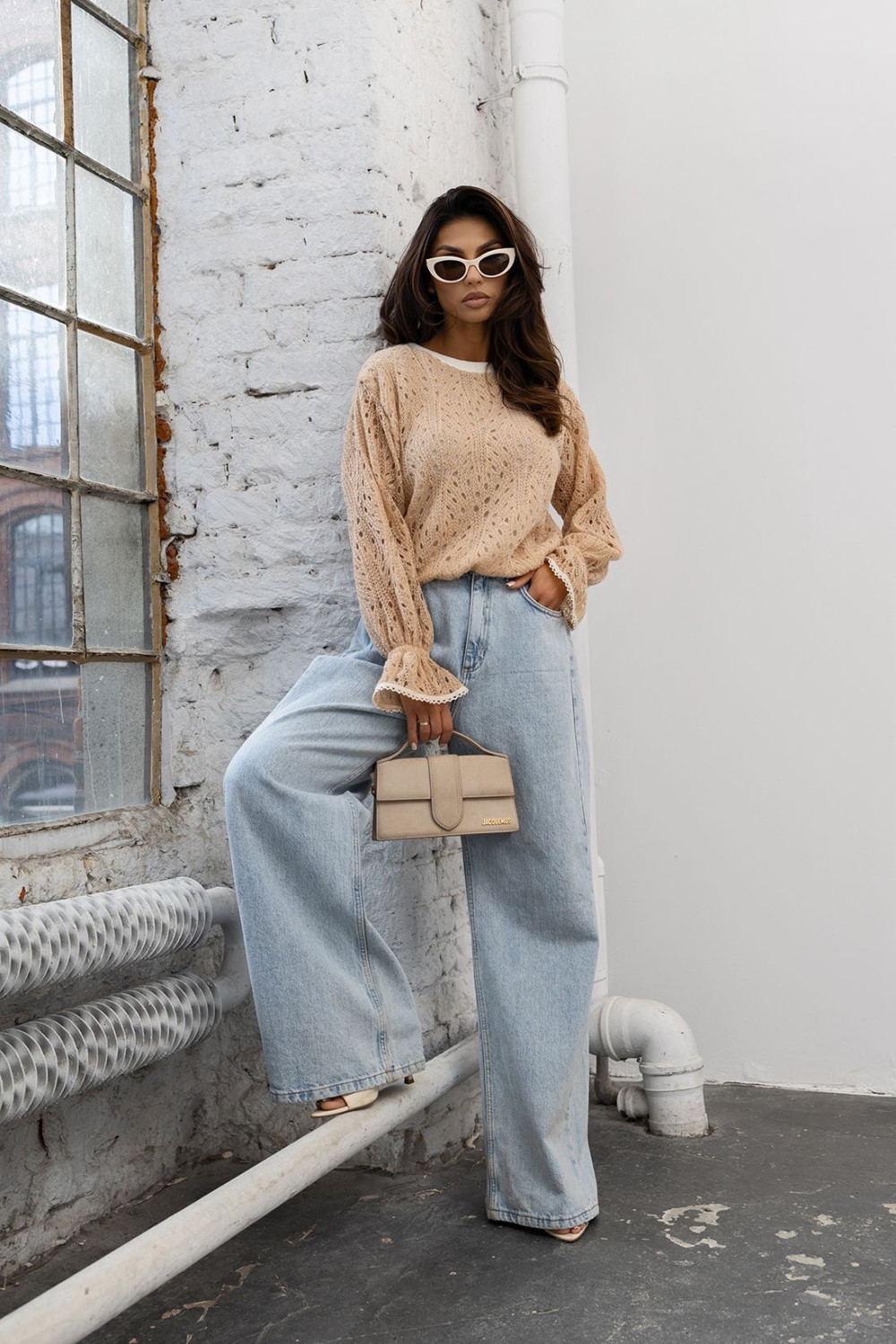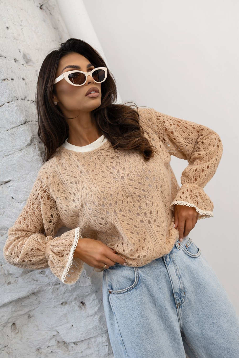 Sweterek ażurkowy ZARRA beżowy