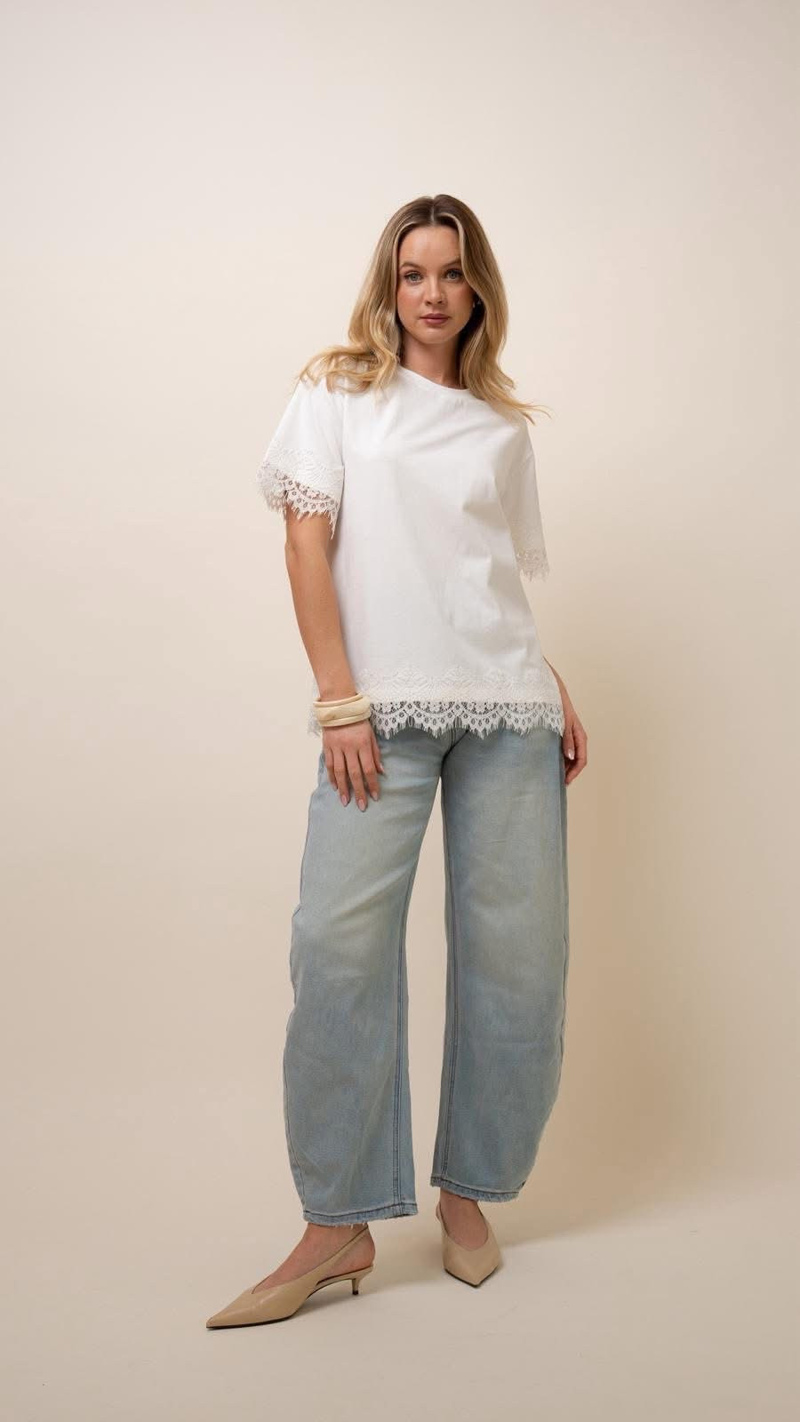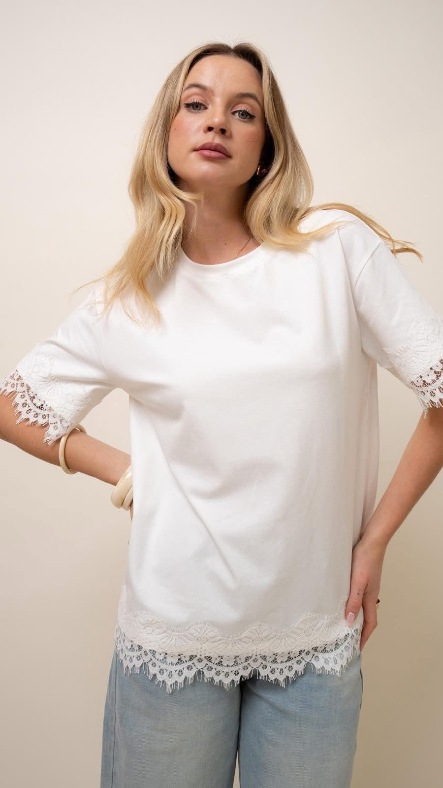 Bluzeczka BIANCA wykończona koronką ecru